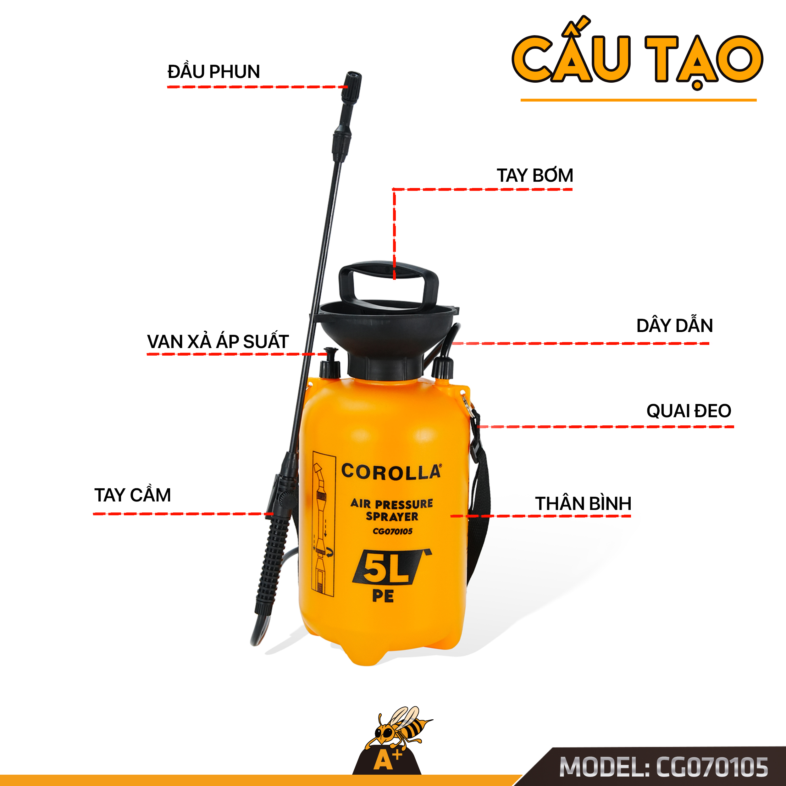 BÌNH PHUN TƯỚI CÂY BƠM THỦ CÔNG 5L COROLLA