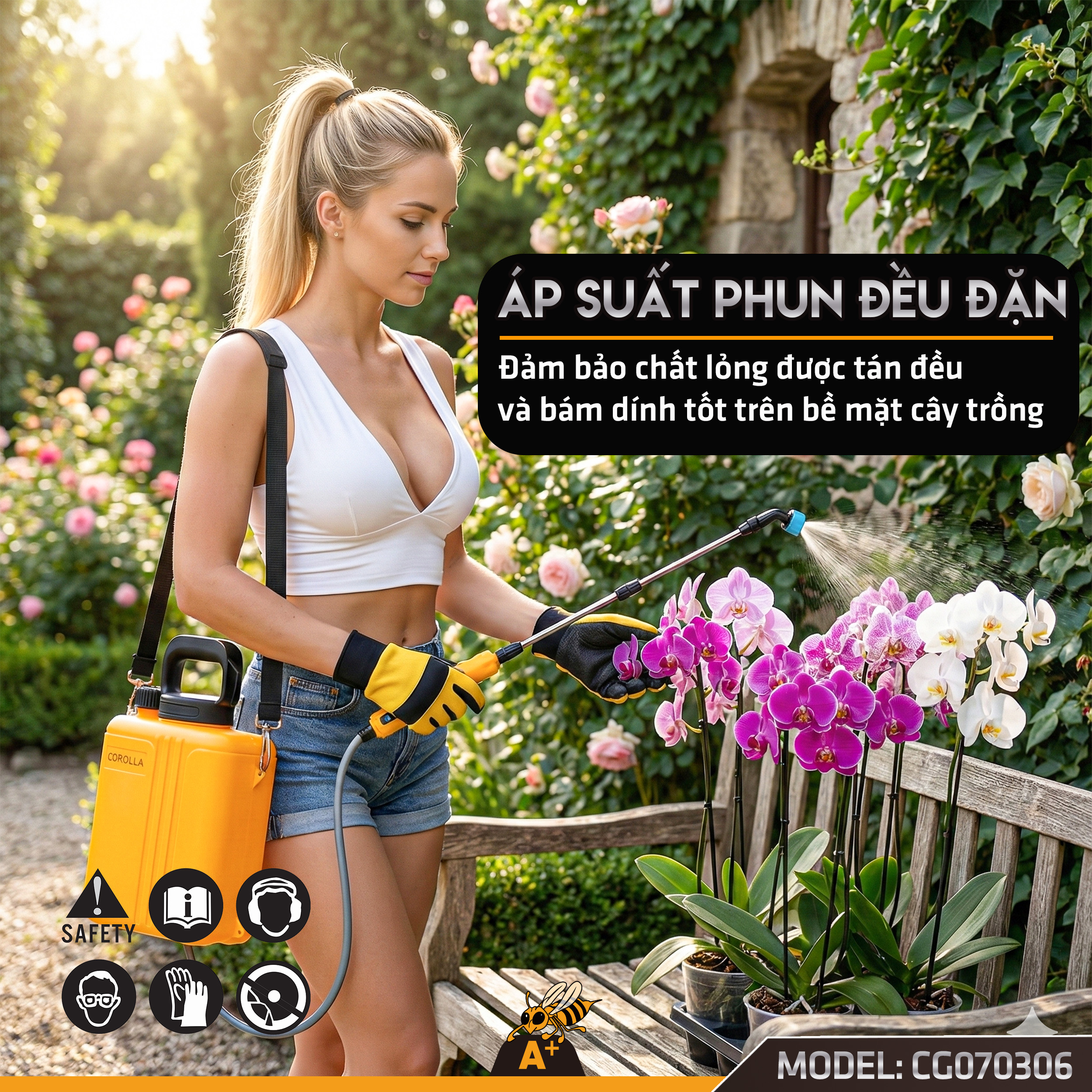 Chăm sóc cây cảnh: Tưới nước, phun các loại dung dịch dinh dưỡng cho vườn lan, hoa kiểng, ban công.