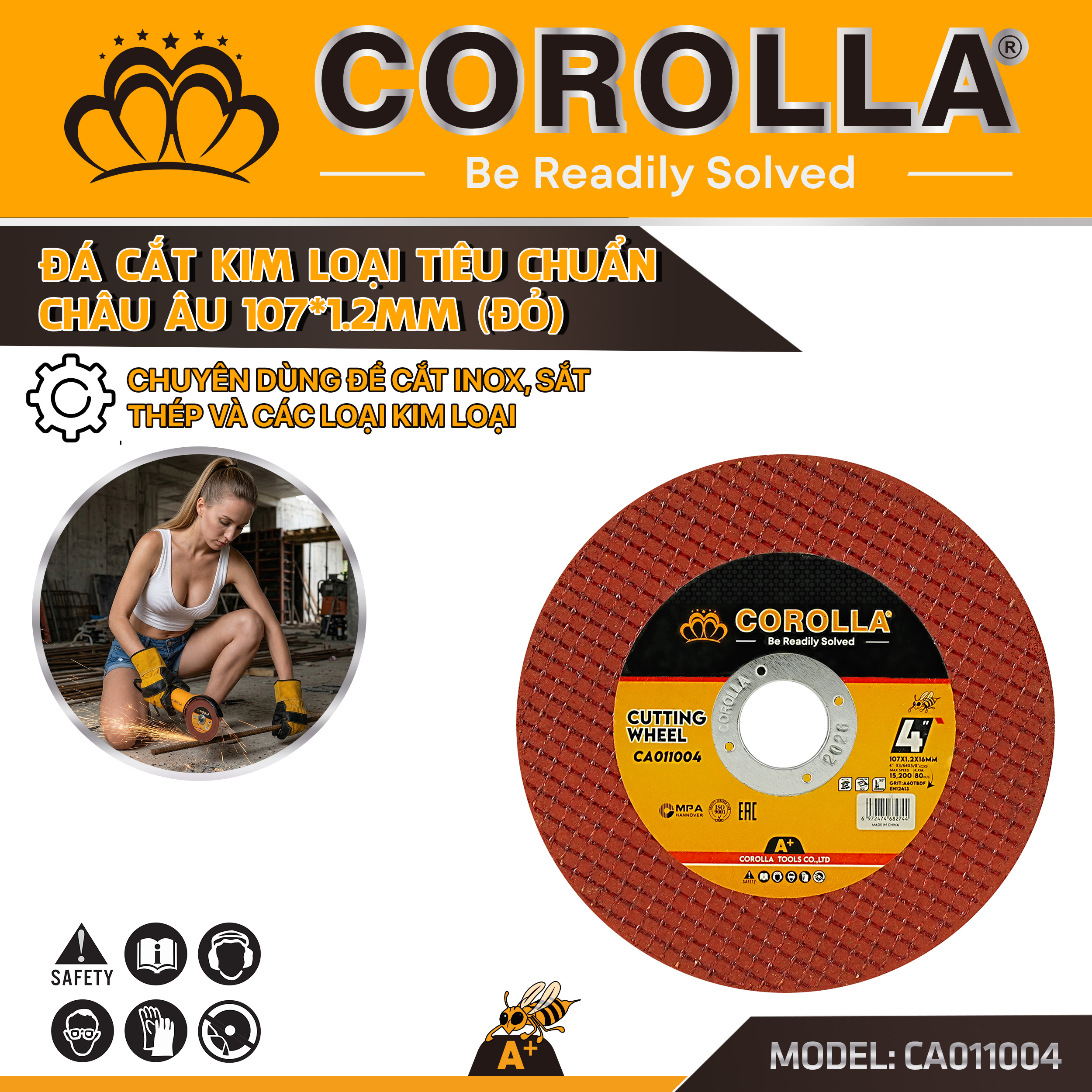 Dưới đây công ty Duy Linh xin giới thiệu thêm về sản phẩm Đá cắt inox 107mm COROLLA để anh chị em Nhà phân phối và Đại lý cùng tìm hiểu.