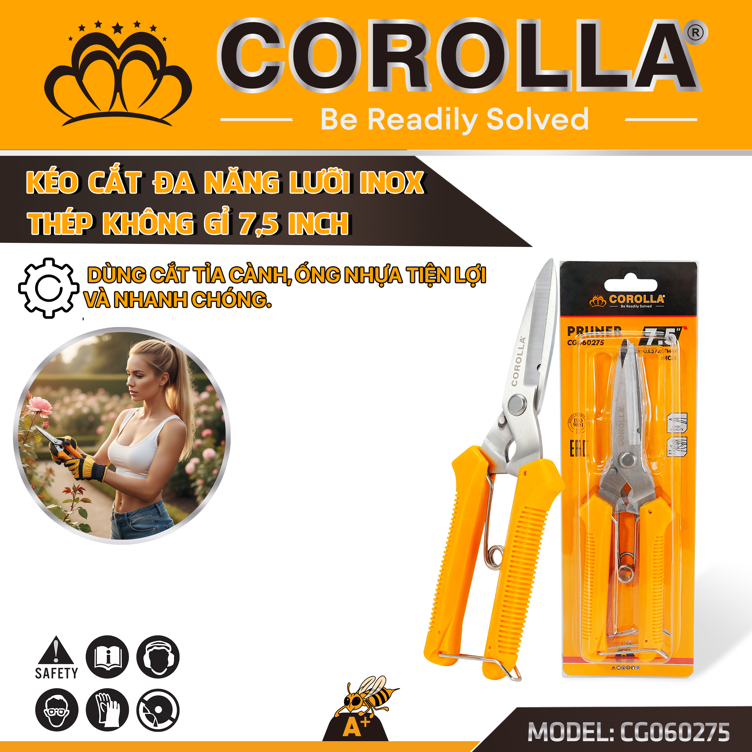 KÉO TỈA CÀNH/THU HOẠCH INOX COROLLA 7.5″ (190MM)