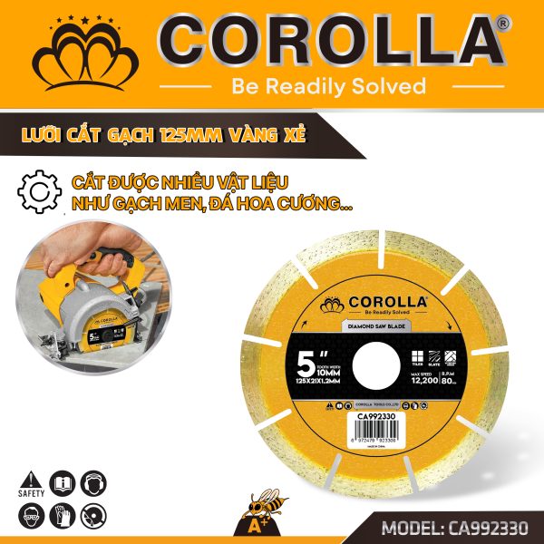 Lưỡi cắt gạch men ceramic cao cấp Corolla phi 125mm là một trong những mặt hàng thuộc danh mục Kim Khí- Dụng Cụ Cầm Tay mà công ty Duy Linh đang phân phối. Thương hiệu COROLLA không còn xa lạ với quý khách hàng trên thị trường Việt Nam. Một trong những sản phẩm bán chạy nhất về Đá cắt, đá mài, nhám xếp, lưỡi cắt gạch, lưỡi cắt gỗ…